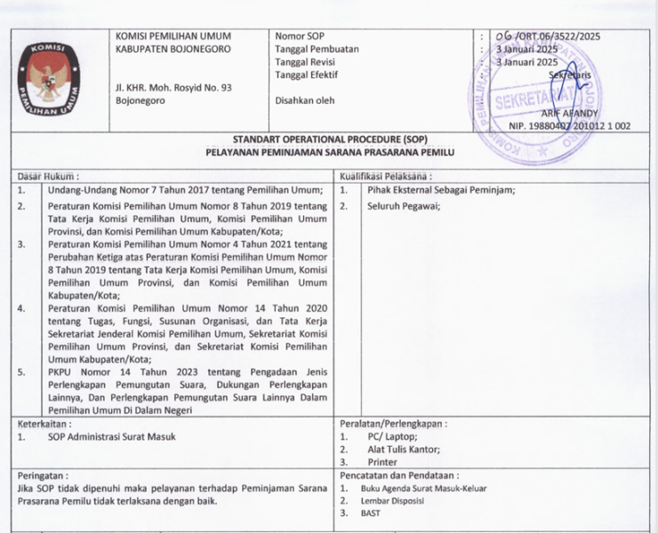 Standar Operasional Prosedur (SOP) Pelayanan Peminjaman Sarana Prasarana Pemilu
