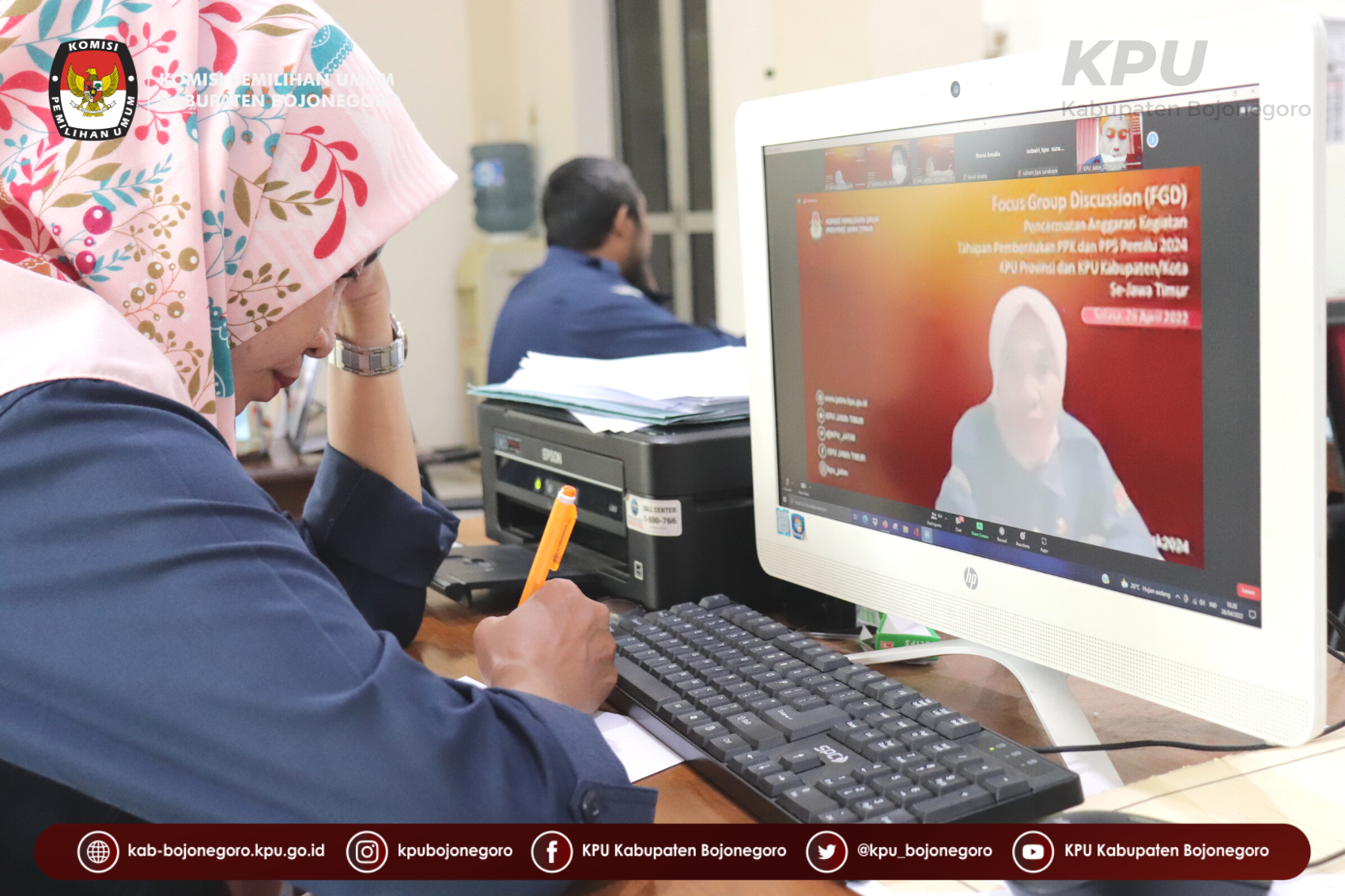 Bojonegoro, kab-bojonegoro.kpu.go.id – Selasa (26/04/2022), KPU Kabupaten Bojonegoro mengikuti kegiatan Focus Group Discussion (FGD) Pencermatan Anggaran dan Kegiatan Tahapan Pembentukan PPK dan PPS Pemilu Tahun 2024 KPU Provinsi dan KPU Kabupaten/Kota se-Jawa Timur secara daring.
