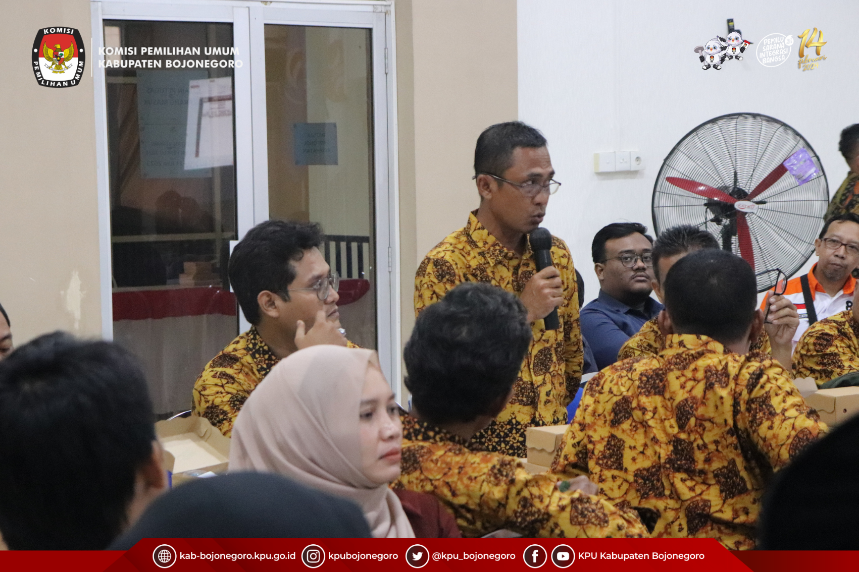 Bojonegoro, kab-bojonegoro.kpu.go.id - Usai melaksanakan kegiatan Penyampaian Hasil Vermin Bacalon Anggota DPRD, KPU Kabupaten Bojonegoro melaksanakan kegiatan Focus Group Discussion (FGD) Penyiapan Rumusan Kebijakan Pemungutan dan Penghitungan Suara dalam Pemilu Serentak Tahun 2024. Kegiatan FGD diikuti oleh Sekretariat KPU Kabupaten Bojonegoro, Bawaslu Kabupaten Bojonegoro, Partai Politik Peserta Pemilu Tahun 2024 Tingkat Kabupaten Bojonegoro, dan Lembaga Swadaya Masyarakat di Bidang Kepemiluan, yaitu PIJAR dan POSNU. Kegiatan FGD dilaksanakan di Aula Lantai 2 KPU Kabupaten Bojonegoro Pukul 15.00 WIB.