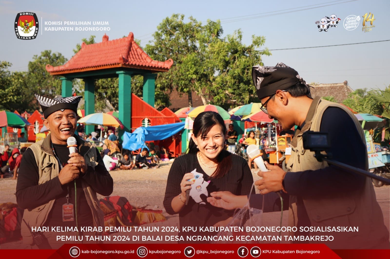 Hari Kelima Kirab Pemilu Tahun 2024, KPU Kabupaten Bojonegoro Sosialisasikan Pemilu Tahun 2024 di Balai Desa Ngrancang Kecamatan Tambakrejo