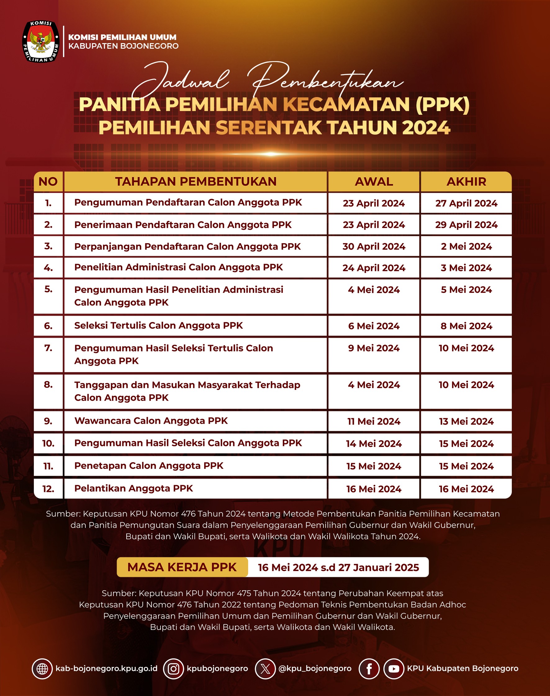 Jadwal Pembentukan Badan Adhoc (PPK dan PPS) Pemilihan Serentak Tahun 2024