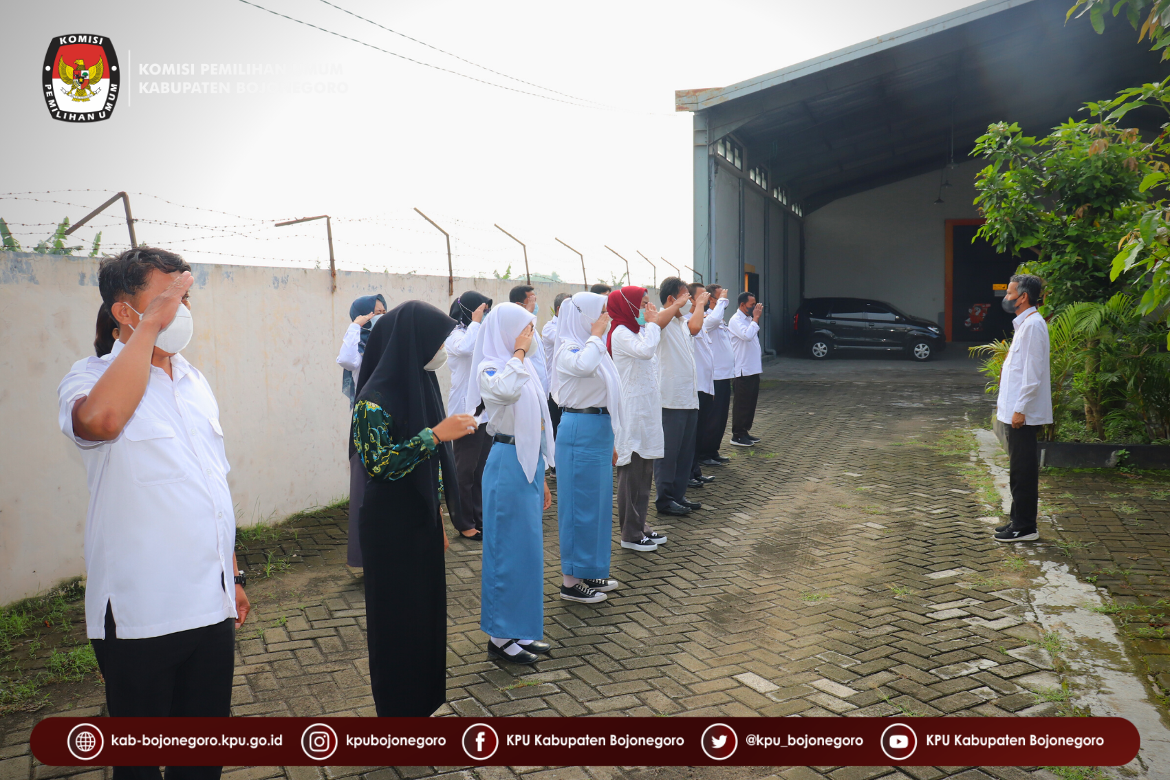 Bojonegoro, kab-bojonegoro.kpu.go.id – KPU Kabupaten Bojonegoro melaksanakan kegiatan rutin apel pagi pada hari Senin, 21 Maret 2022. Apel pagi dimulai pukul 08:00 WIB bertempat di depan Rumah Pintar Pemilu Khayangan Api.