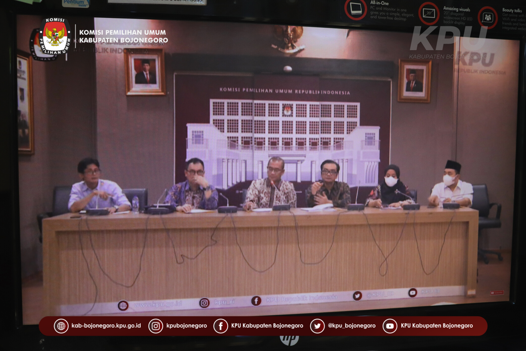 Ketua KPU RI Hasyim Asy’ari, Anggota KPU RI August Mellaz, Betty Epsilon Idroos, Mochammad Afifuddin, Yulianto Sudrajat serta Parsadaan Harahap memberikan keterangan pers paska pertemuan dengan Presiden RI Joko Widodo, pada konferensi pers di Media Center KPU, Senin (30/05/2022) mulai pukul 15.30 WIB melalui live streaming YouTube KPU RI. Sejumlah informasi yang disampaikan yakni kesiapan KPU menghadapi Pemilu 2024, mulai dari SDM, pemanfaatan teknologi informasi, pendataan pemilih, anggaran, serta sarana dan prasarana. (humas/nis)