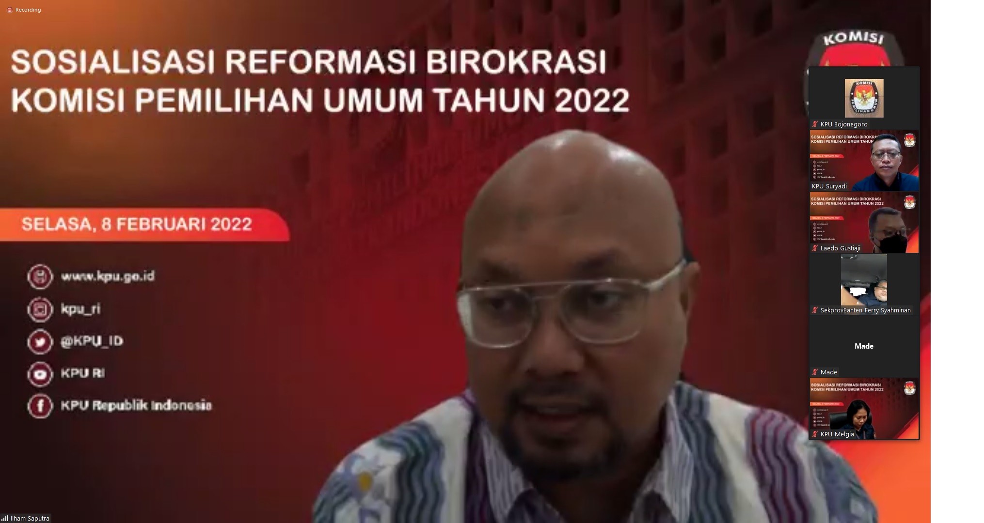 Bojonegoro, kab-bojonegoro.kpu.go.id - Komisi Pemilihan Umum (KPU) Kabupaten Bojonegoro menghadiri sosialisasi Reformasi Birokrasi KPU Tahun 2022. Kegiatan ini dilaksanakan secara daring dan disiarkan melalui kanal Youtube KPU RI, Selasa (08/02/2022).
