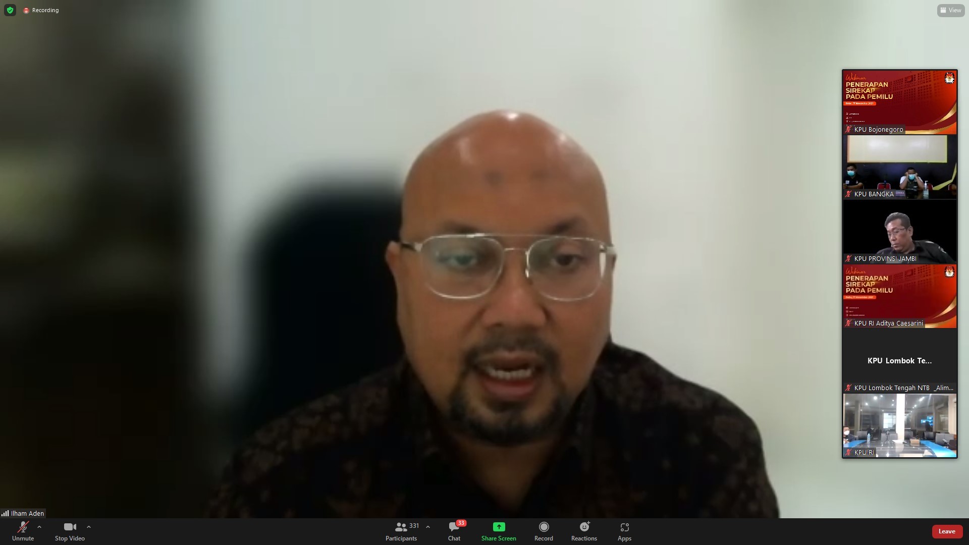 Bojonegoro, kab-bojonegoro.kpu.go.id - Komisi Pemilihan Umum (KPU) Kabupaten Bojonegoro menghadiri webinar Penerapan Sirekap pada Pemilu, Rabu (17/11/2021). Peserta Webinar antara lain seluruh anggota KPU Provinsi dan KPU Kabupaten/Kota serta Kabag dan Kasubbag Teknis.