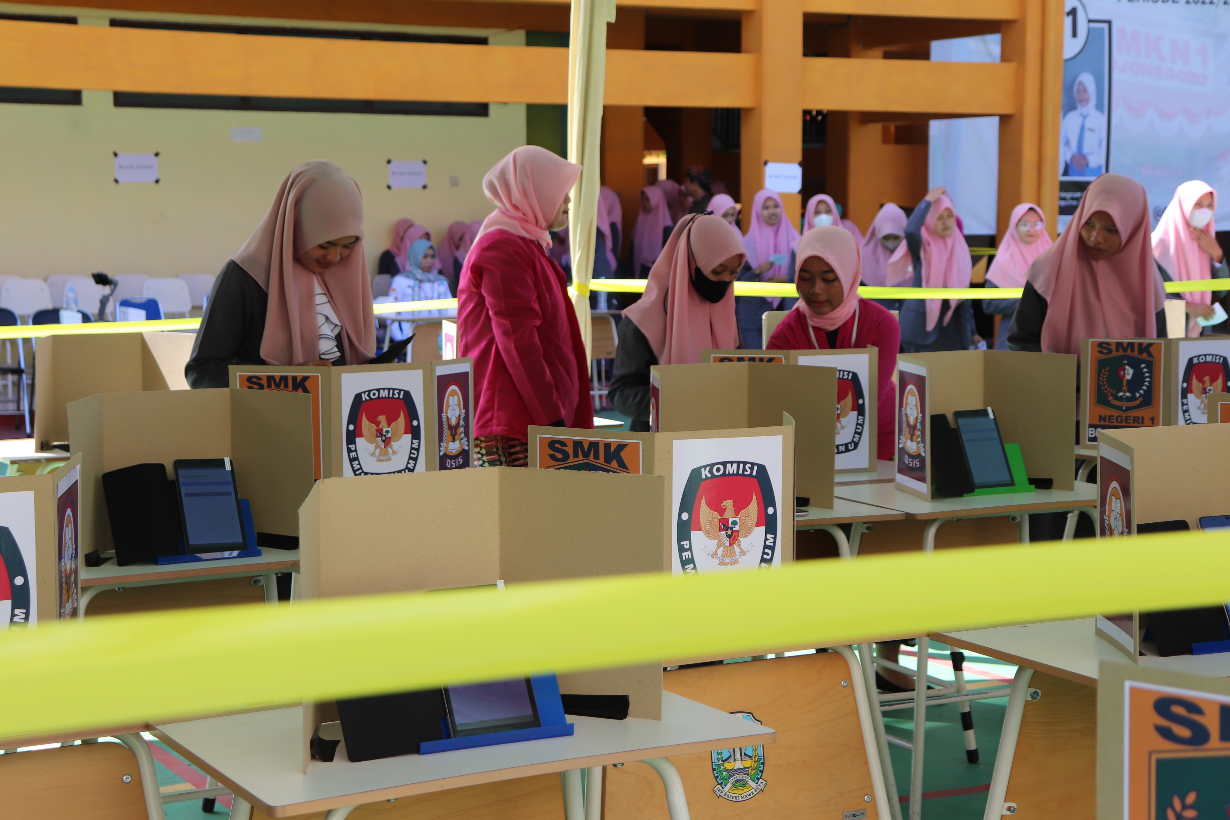 KPU Kabupaten Bojonegoro Dampingi Pelaksanaan Pemilihan OSIS SMKN 1 Bojonegoro dengan E-Voting