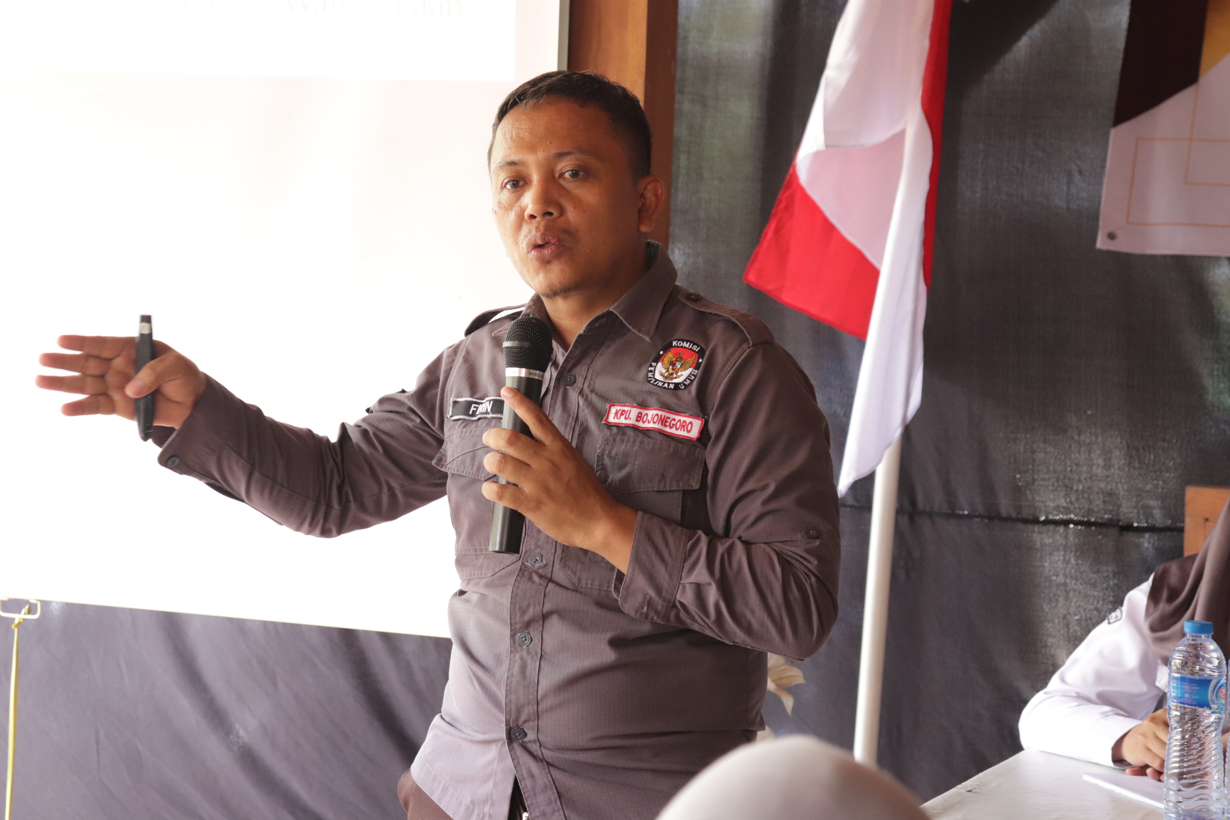 Materi yang kedua disampaikan oleh Muhammad Alfianto dari Bawaslu Kabupaten Bojonegoro mengenai Pengawasan Partisipatif.