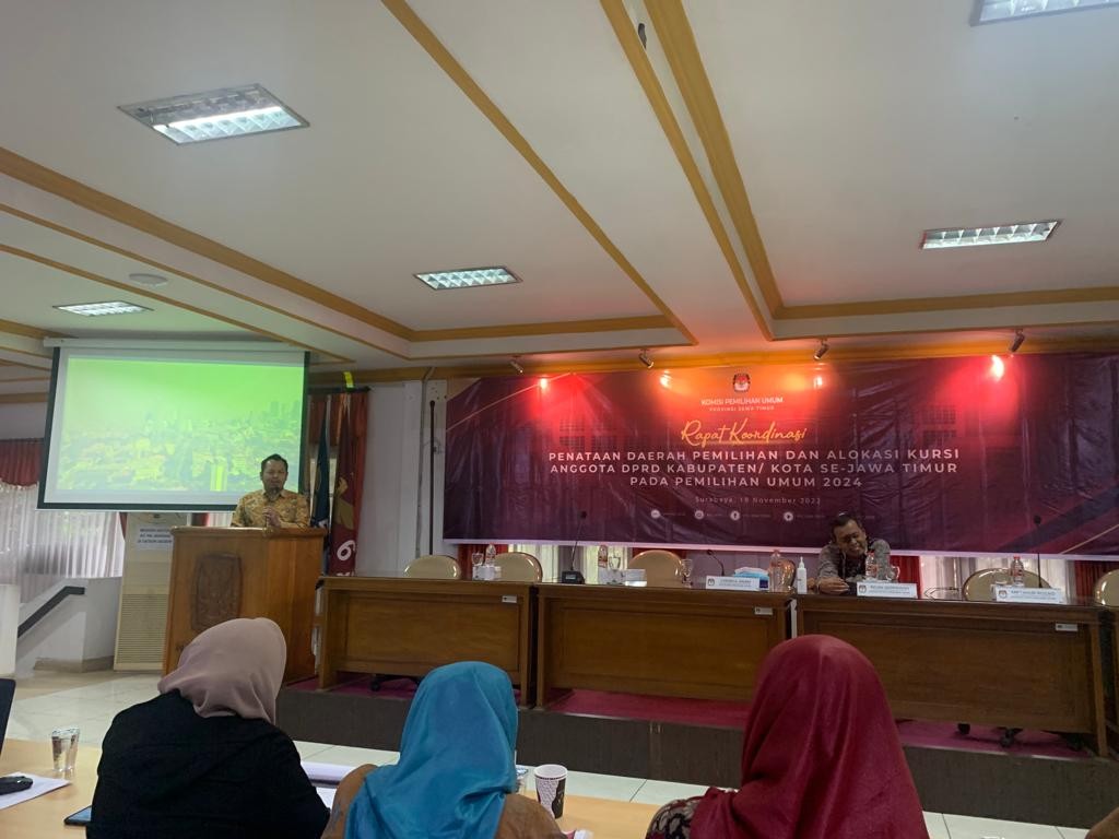 Dalam rapat koordinasi, Insan Qoriawan selaku Divisi Teknis Penyelenggaraan KPU Jatim mengatakan bahwa pada saat ini sudah memasuki tahapan penyusunan rancangan penataan dapil dan alokasi kursi anggota DPRD Kabupaten/Kota untuk Pemilu 2024.