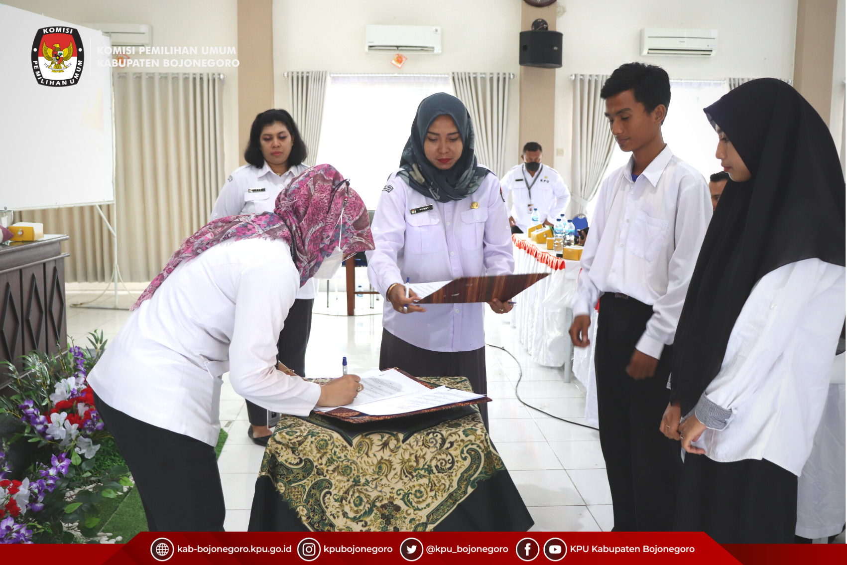 Bojonegoro, https://kab-bojonegoro.kpu.go.id/ - Kamis (16/3), KPU Kabupaten Bojonegoro melaksanakan kegiatan Penandatanganan Surat Perjanjian Kinerja (SPK) Tenaga Pendukung Sekretariat Panitia Pemilihan Kecamatan (PPK) se-Kabupaten Bojonegoro Pada Pemilihan Umum Tahun 2024. Kegiatan Penandatanganan SPK turut dihadiri oleh Ketua dan Sekretaris PPK se-Kabupaten Bojonegoro dan bertempat di Aula Lantai 2 KPU Kabupaten Bojonegoro.