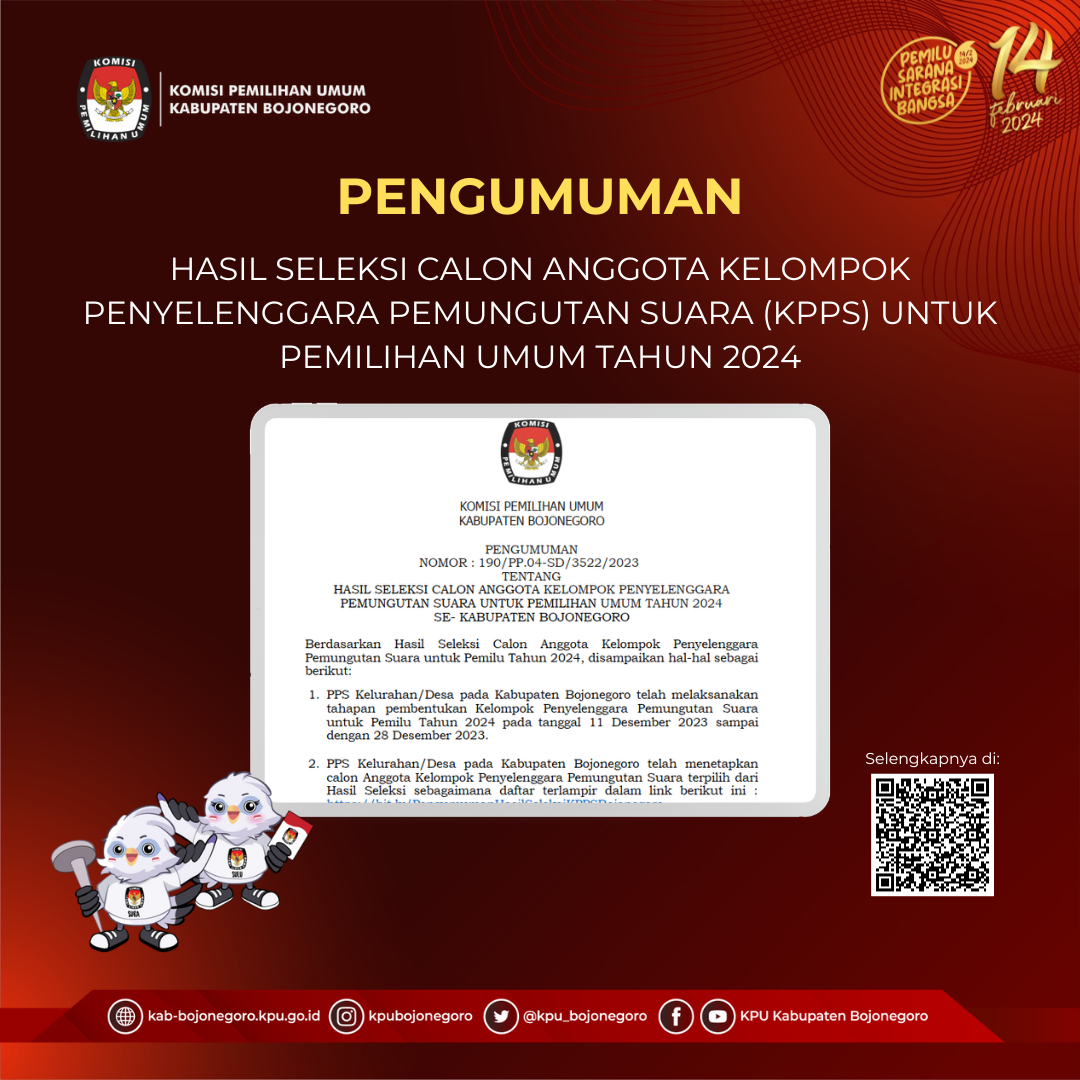 Pengumuman Hasil Seleksi Calon Anggota KPPS Pemilu Tahun 2024