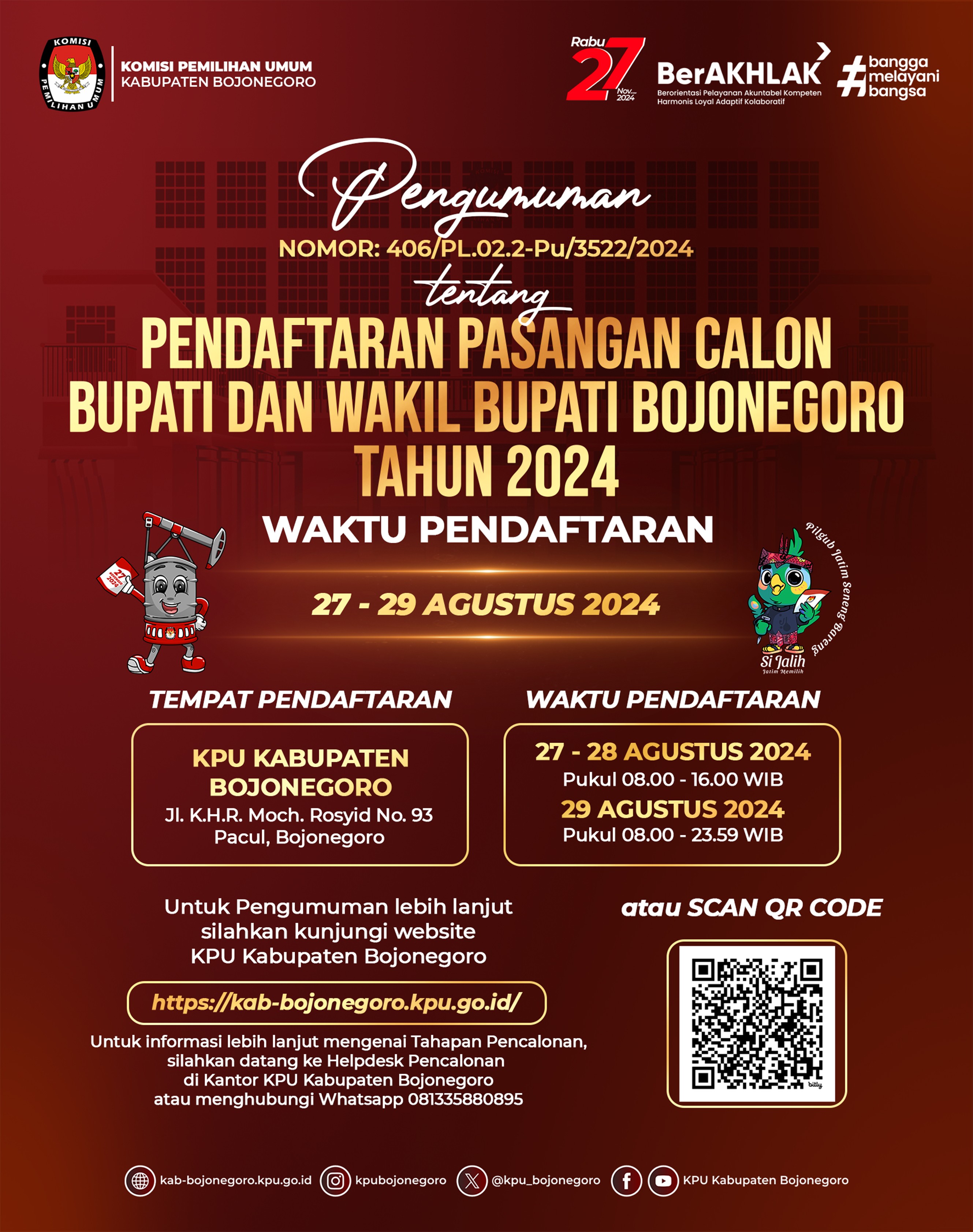 Pengumuman Pendaftaran Pasangan Calon Bupati dan Wakil Bupati Bojonegoro Tahun 2024