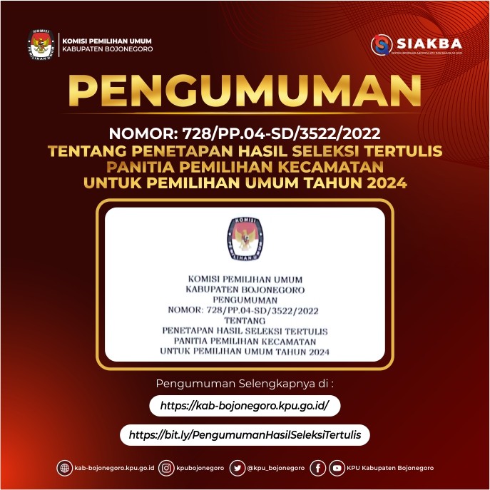 Pengumuman Penetapan Hasil Seleksi Tertulis Panitia Pemilihan Kecamatan Untuk Pemilihan Umum Tahun 2024