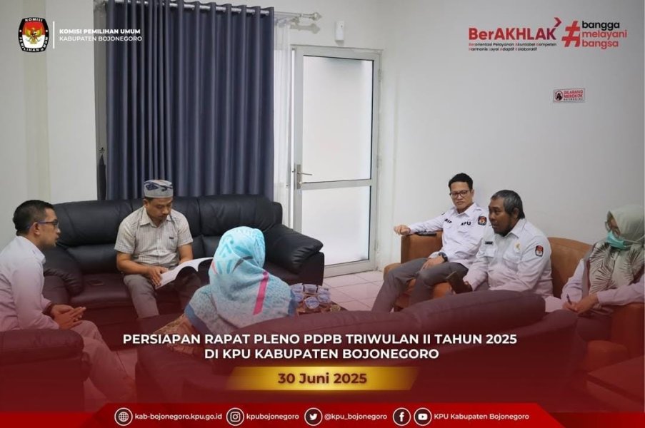 Persiapan Rapat Pleno Pemuktahiran Data Pemilih Berkelanjutan (PDPB) Triwulan II Tahun 2025 KPU Kabupaten Bojonegoro