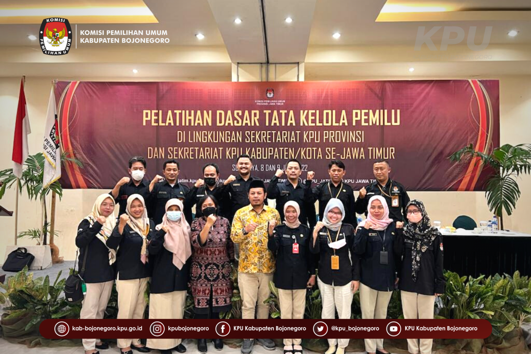 Bojonegoro, kab-bojonegoro.kpu.go.id – (8/6) Pegawai Negeri Sipil (PNS) KPU Kabupaten Bojonegoro mengikuti kegiatan Pelatihan Dasar Tata Kelola Pemilu di Hotel Narita Surabaya. Kegiatan pelatihan dimulai pukul 08.00 sampai dengan 17.00 WIB.