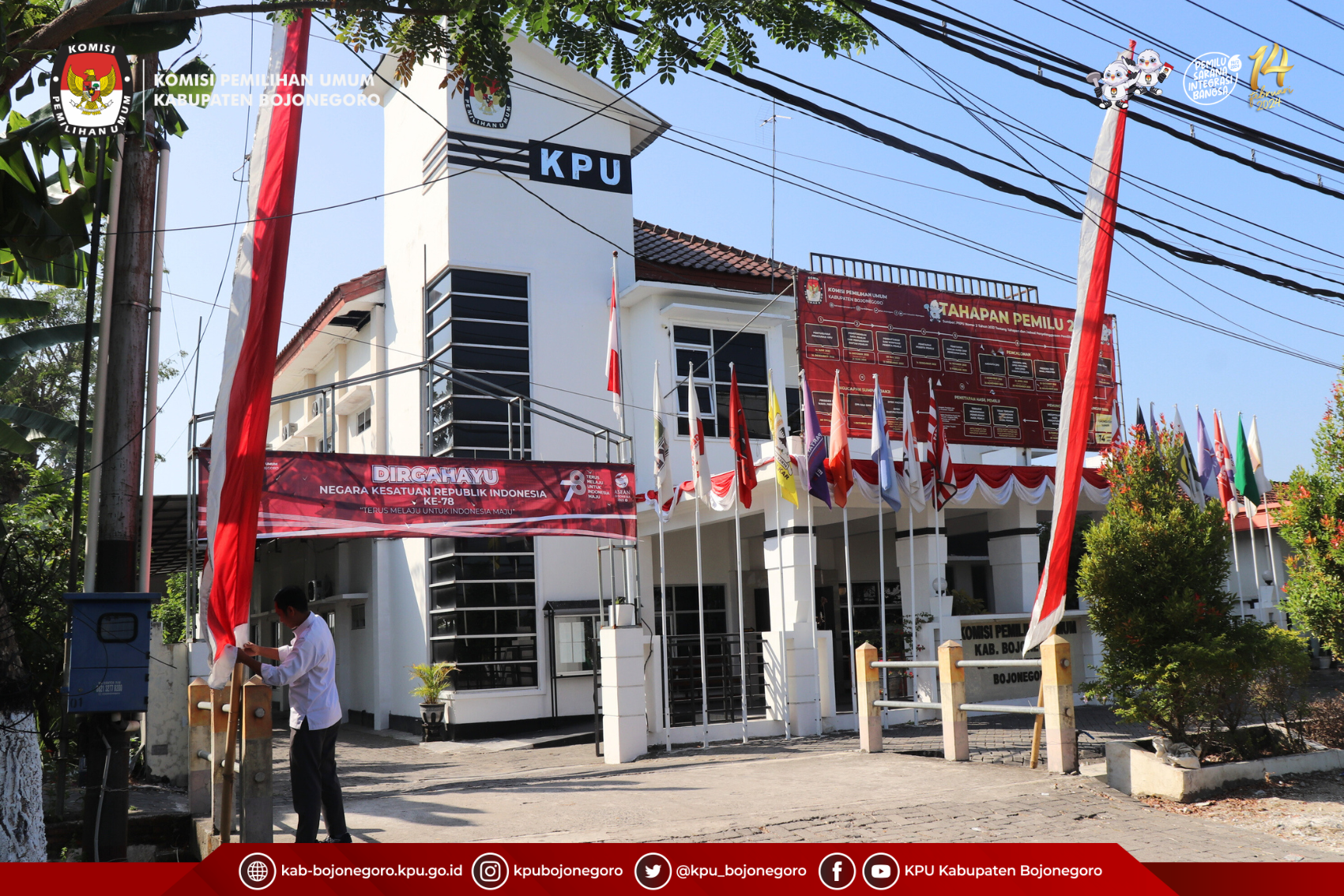Semarakkan Peringatan HUT RI ke-78, KPU Bojonegoro Pasang Bendera dan Dekorasi Merah Putih